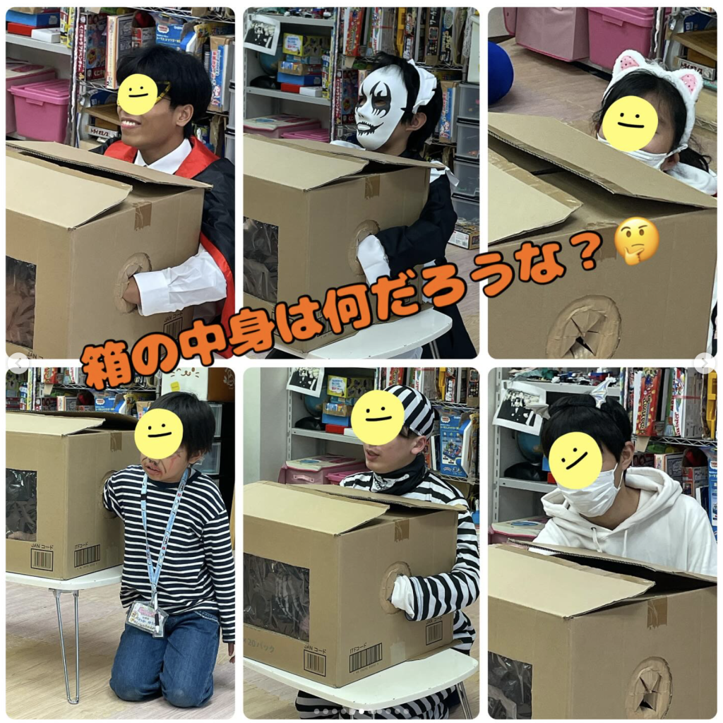 「箱の中身はなんだろな?ゲーム」全員に参加賞のお菓子をプレゼント🍭「目玉つかみゲーム」や「モンスターシューティング(射的)」で大盛り上がり💪